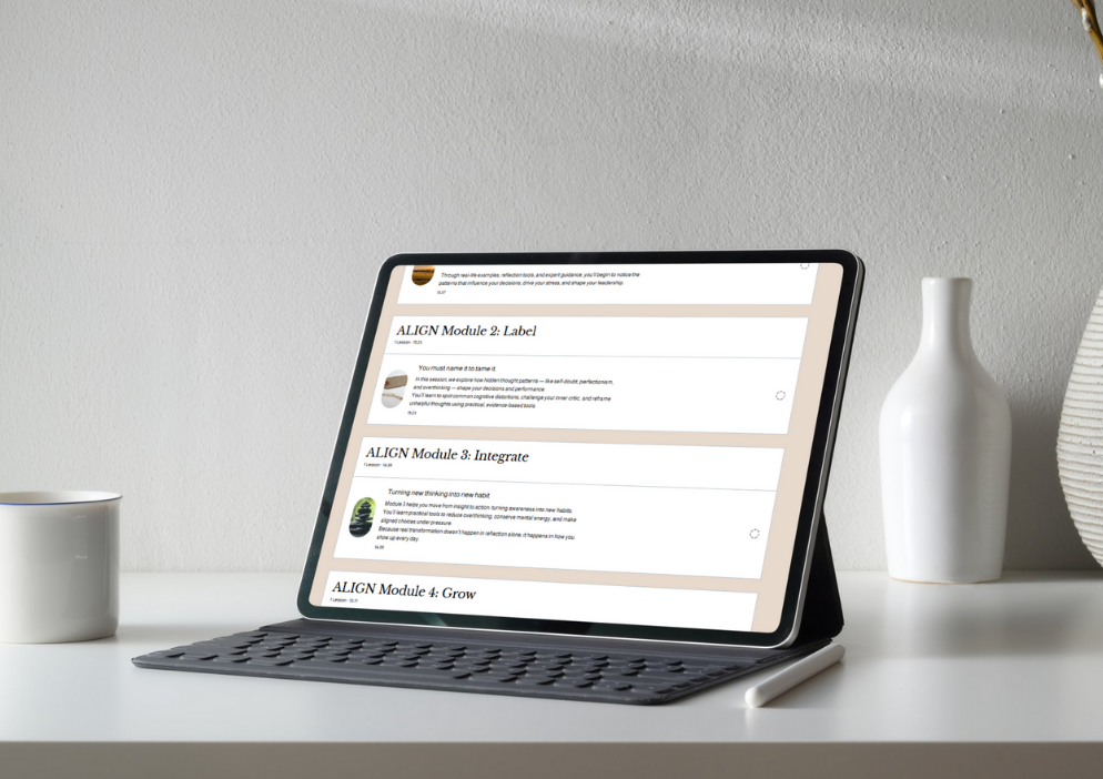 That’s where ALIGN Core comes in — a 5-module programme with guided coaching videos and reflection tools to help you rebuild resilience, confidence, and aligned success.